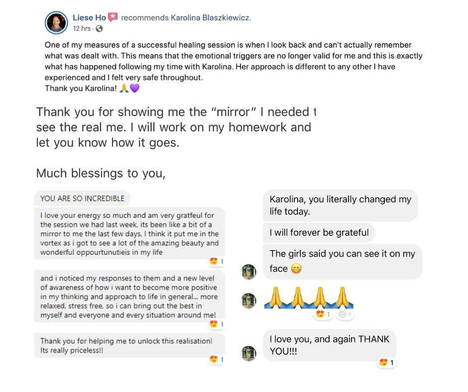 “Working with Karolina has been life-changing. Her intuitive guidance and quantum healing work helped me uncover blocks I didn’t even know were there. The shifts I’ve experienced are profound, and I now feel more empowered, free, and aligned than ever before.”